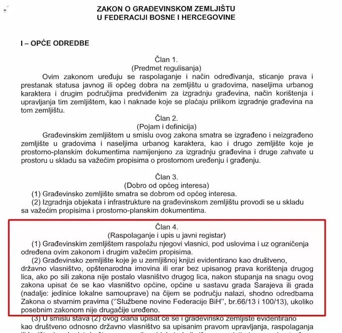 Vijesti.ba su ranije pisale da je suštinski problem za većinu u tome da se ovim promjenama vlasništvo nad građevinskim zemljištem (bez upisanog prava korištenja drugog lica) prepiše na jedinice lokalne samouprave (općine) kao i ono koje je evidentirano kao društveno odnosno državno vlasništvo sa upisanim pravom upravljanja, raspolaganja ili korištenja u korist društveno pravnih subjekata koji više ne egzistiraju.